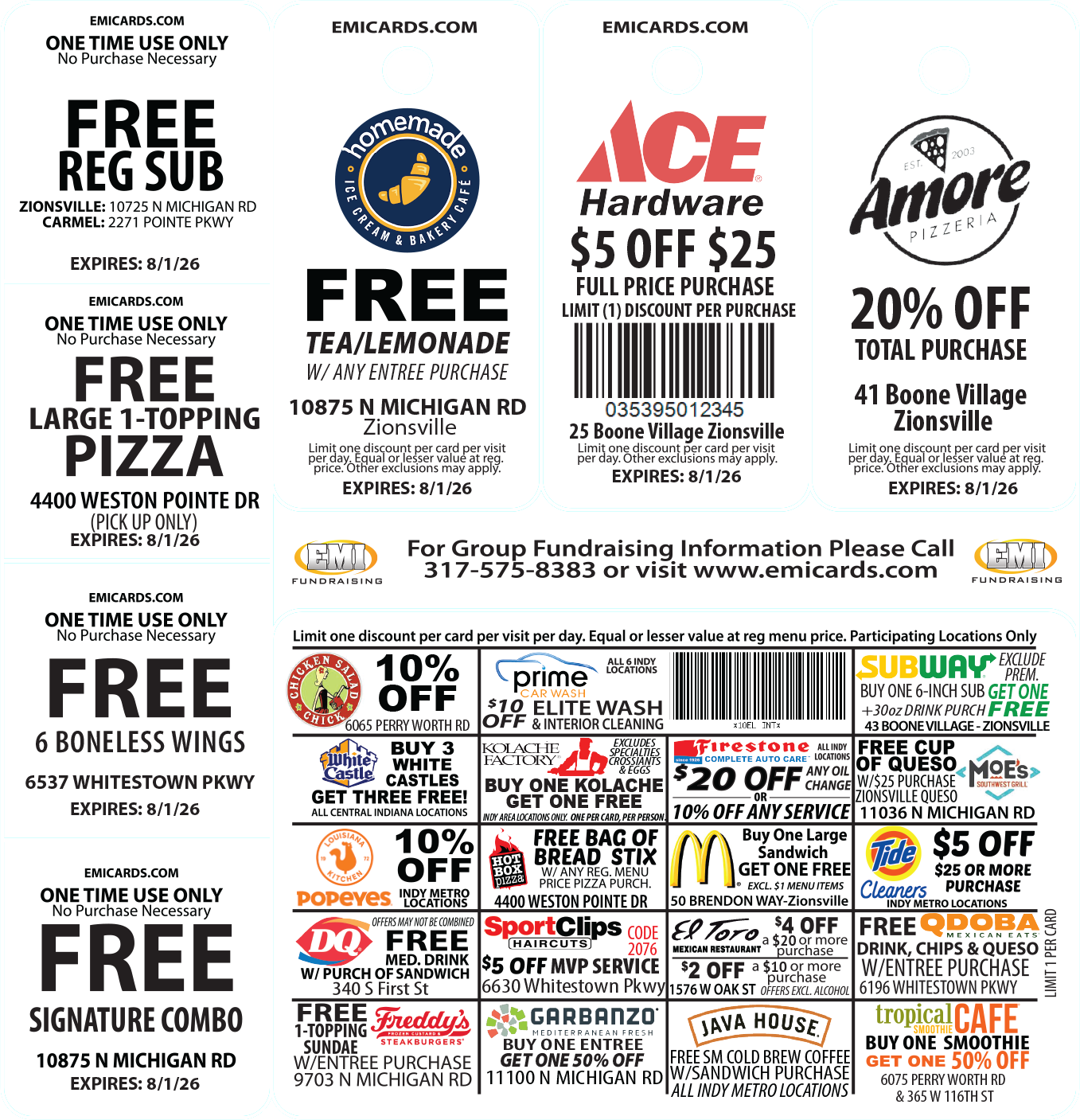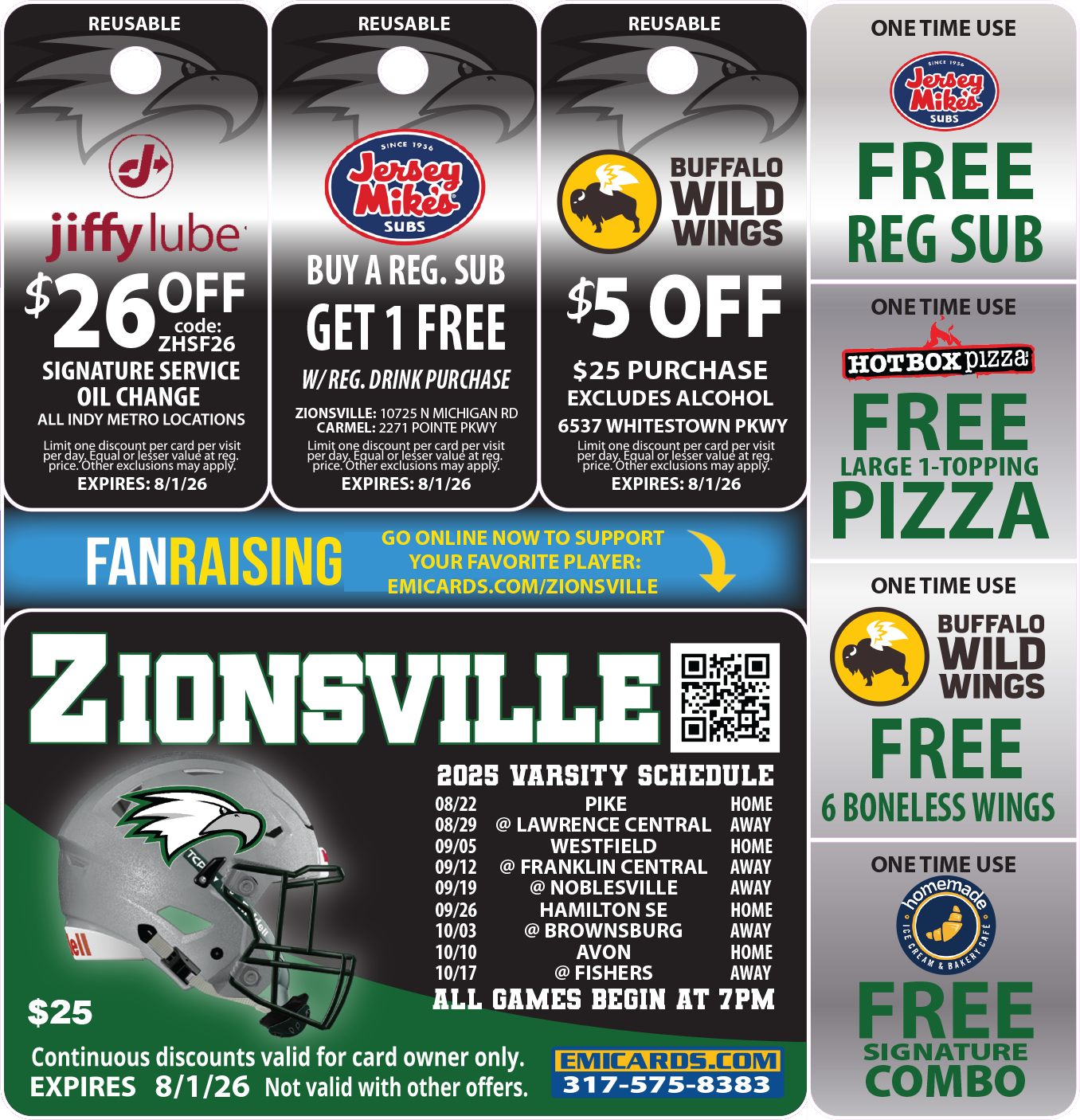Save money at great local places all year long while also supporting Zionsville Football. We appreciate your support and hope you’ll purchase a discount card and share this fundraiser with your friends and family!